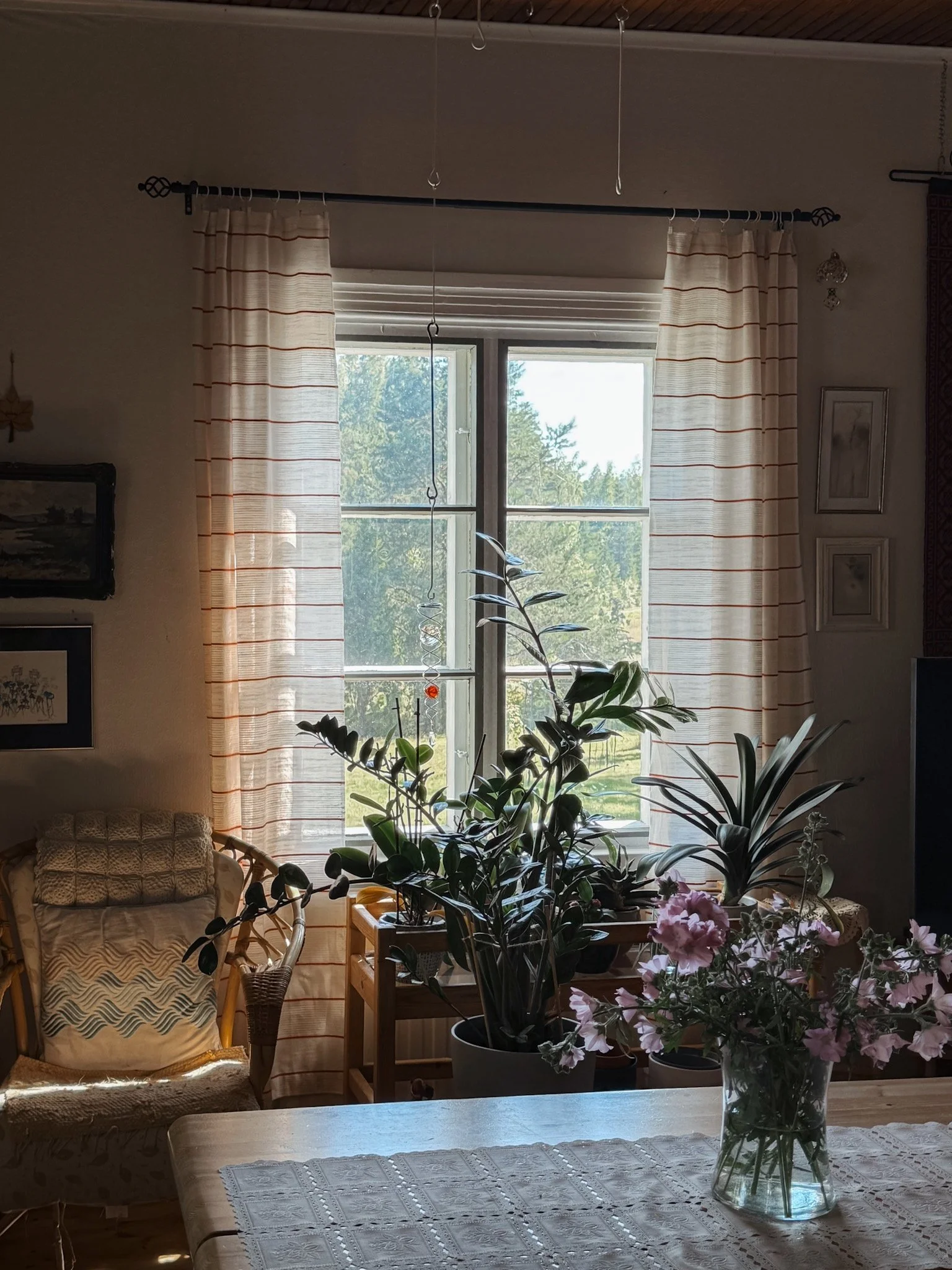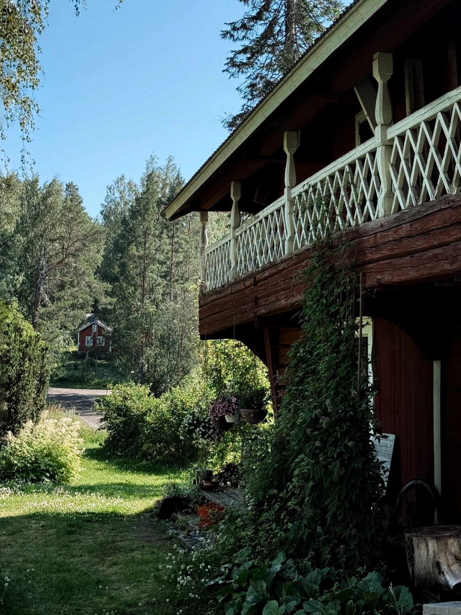 Pihapiirissä ollut navetta on purettu, mutta Tainan äiti on vaalinut pihapiiriä ja puutarhaa.